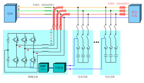 ? 與固定電容器補(bǔ)償聯(lián)動(dòng),采用SVG的控制器,統(tǒng)一控制電容器的投切,既能減少體積又方便協(xié)調(diào)控制。