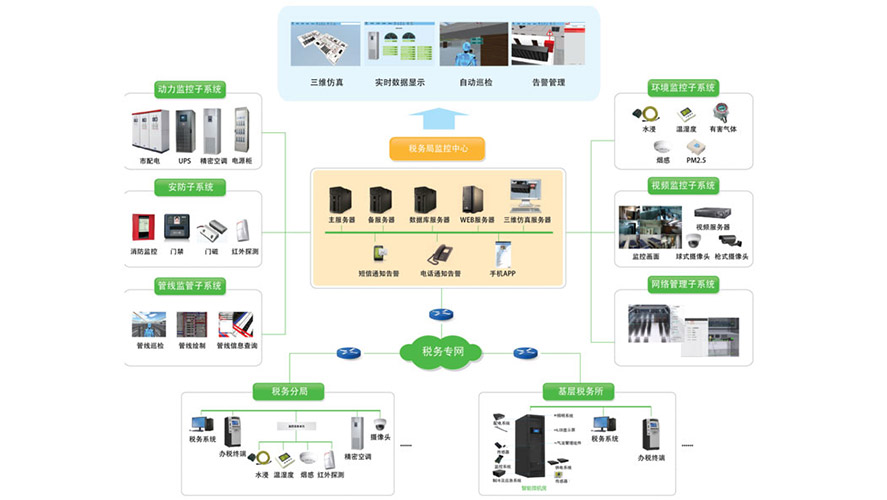WiseView 智慧可視化基礎(chǔ)設(shè)施管理平臺(tái)通過先進(jìn)的傳感器技術(shù) 、網(wǎng)絡(luò)技術(shù)結(jié)合3D虛擬仿真技術(shù)實(shí)現(xiàn)了對(duì)信息機(jī)房基礎(chǔ)設(shè)施和網(wǎng)絡(luò)設(shè)備、服務(wù)器設(shè)備、數(shù)據(jù)庫、應(yīng)用及業(yè)務(wù)的集中監(jiān)控和管理,且本系統(tǒng)通過集中監(jiān)控、分級(jí)部署的方式,可實(shí)現(xiàn)多級(jí)多層管理。 管得全:將各類監(jiān)控對(duì)象、監(jiān)控信息進(jìn)行整合,在統(tǒng)一的監(jiān)控平臺(tái)上進(jìn)行管理。實(shí)現(xiàn)集中監(jiān)控,分級(jí)管理,消除各自為政、信息孤島。 看的見:基于3D虛擬仿真技術(shù)對(duì)實(shí)景進(jìn)行1:1還原,真實(shí)呈現(xiàn)監(jiān)控對(duì)象的外觀、位置及狀態(tài),透明化與可視化的管理。提供手機(jī)APP,實(shí)現(xiàn)全天候全地域查看功能。 效率高:將告警通知、智能巡檢、專家?guī)旒夹g(shù)進(jìn)行有機(jī)結(jié)合,實(shí)現(xiàn)自動(dòng)巡檢,告警定位,故障分析,減輕維護(hù)人員工作量,提高維護(hù)效率;標(biāo)準(zhǔn)化:基層機(jī)房的規(guī)范化管理,夯實(shí)信息維護(hù)最后一公里。
