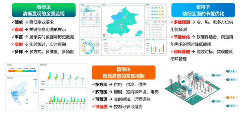 提供設備層、企業(yè)層、園區(qū)層、電網層等各層級冷熱電氣水綜合能源網絡的能源管理服務,降低用能成本,提升能源利用效率,減少運維人力需求。